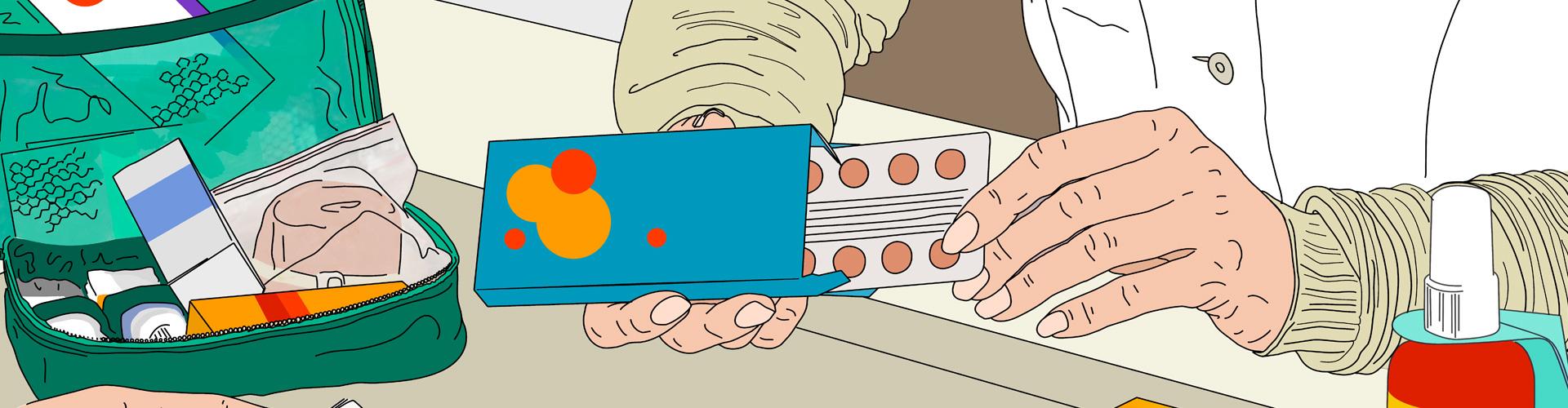 Individuelle Überprüfung und Beratung zur Reiseapotheke, Empfehlung der Grund- und Spezialausstattung, im Sprechzimmer.
